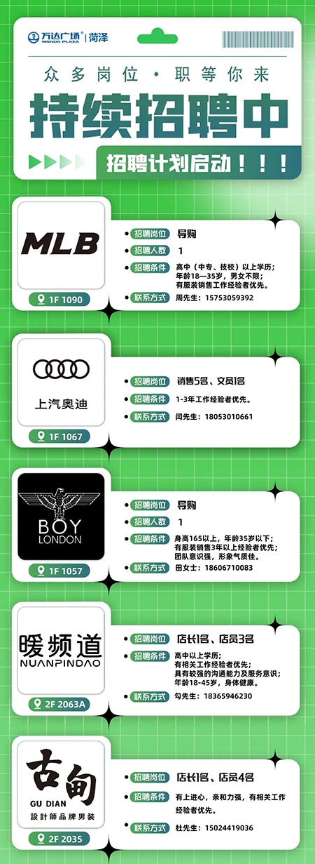 【萬達(dá)商戶招聘】多種崗位等你選~~~
